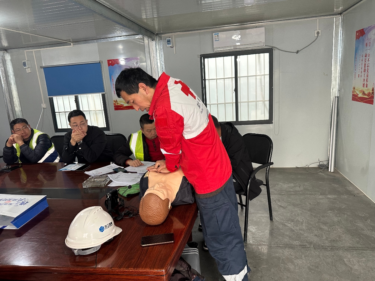 活动由襄城区红十字会张文军老师主讲,通过多种形式向项目管理人员和施工人员普及安全知识。张文军以安全知识讲座的方式,详细讲解了工伤预防的重要性及具体措施,并发放了相关宣传资料。随后,应急救援队还组织了应急演练,模拟了突发事故的应对流程。