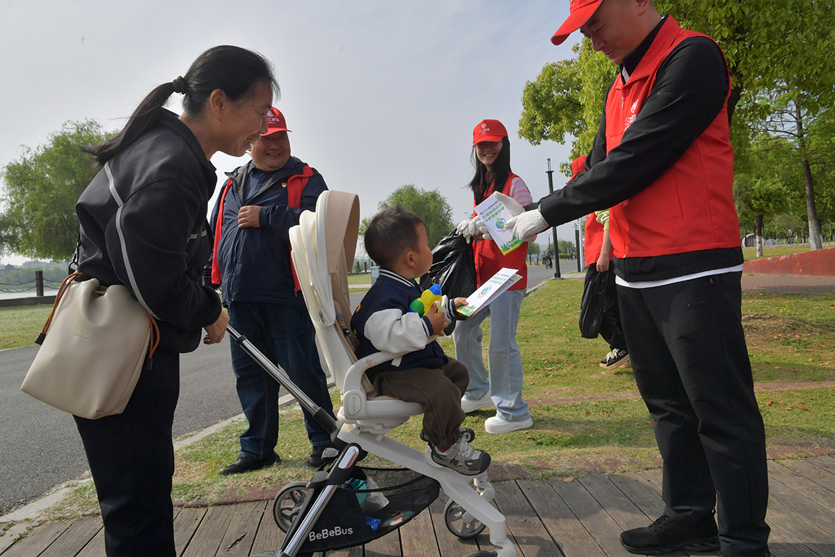 垃圾清理结束后,党员志愿者在沿江周边向过往路人发放环保宣传手册,用通俗易懂的语言讲解地球日知识、低碳生活技巧及918博天堂生态保护要点,传递绿色发展理念,引导群众树立环保意识,主动参与生态保护,打通环保宣传“最后一公里”。